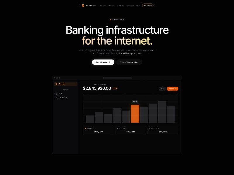 Ideal use case: launching or rebranding a fintech, banking-as-a-service, or finance analytics SaaS with a premium, product-led marketing site.