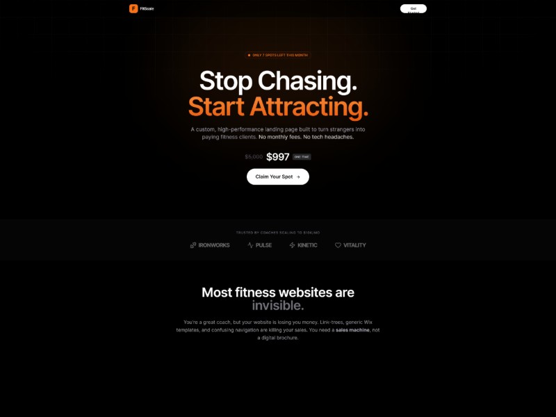 A high-impact, dark-mode landing page template crafted for fitness coaches who want to attract premium clients and sell programs on autopilot.