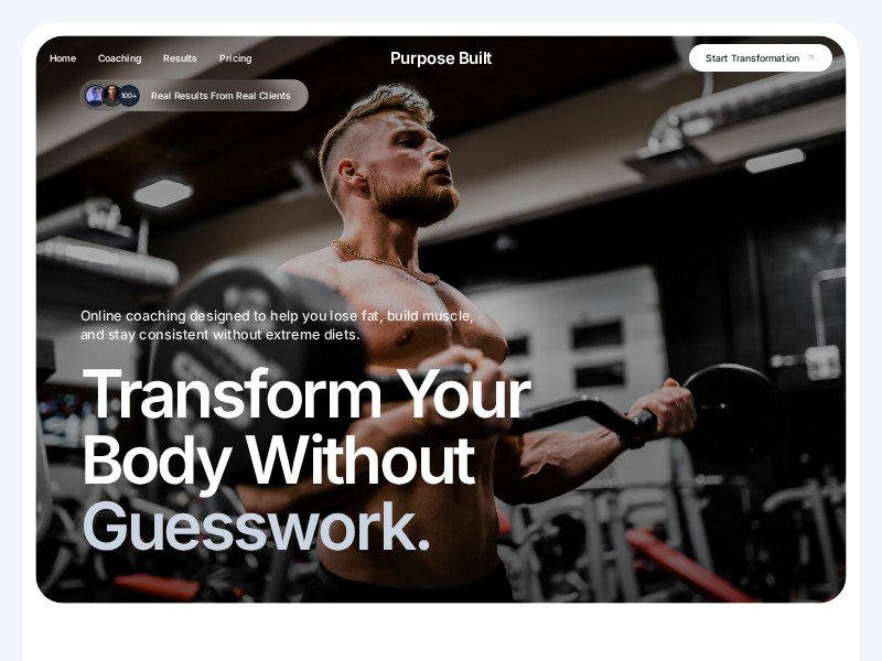 A sleek, high-converting landing page template for fitness coaches and personal training brands offering online or in-person transformation programs.