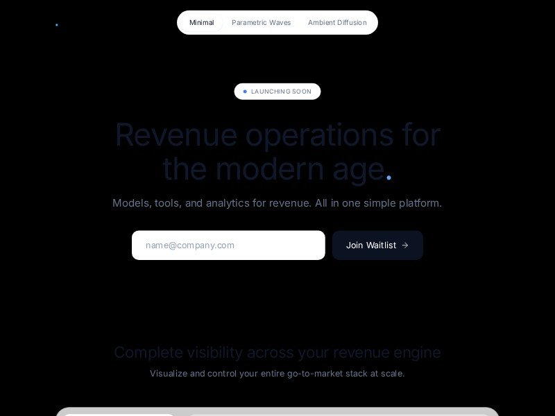 A sleek early-access landing page template for revops, analytics, and B2B SaaS products. It combines a high-trust hero, waitlist signup form, and interactive product storytelling to showcase a modern revenue platform.