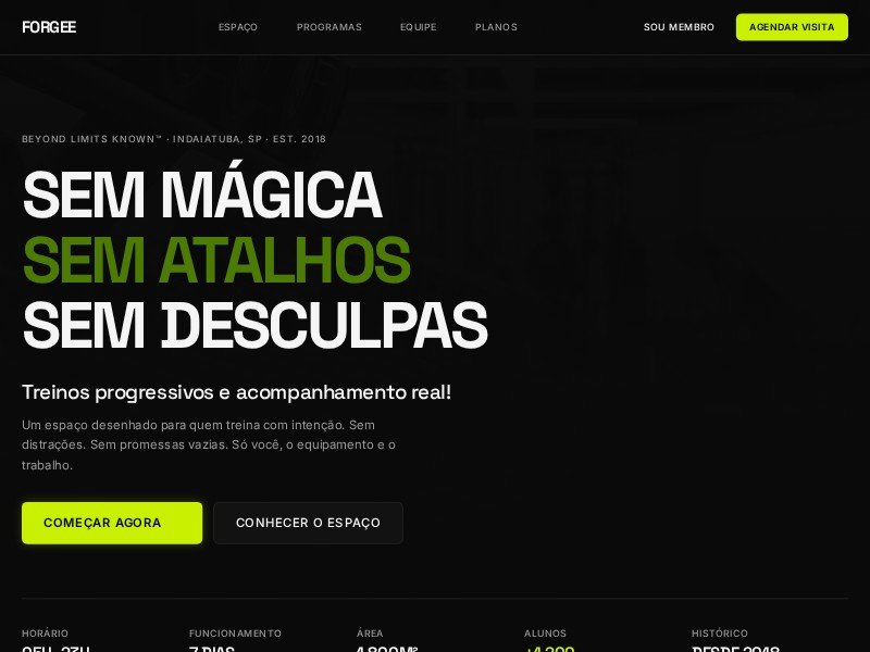Forgee is a premium fitness and gym landing page template crafted for facilities that value discipline over distractions. Featuring a brutalist yet clean aesthetic, it emphasizes intensity, precision, and control through a sophisticated dark-mode UI.