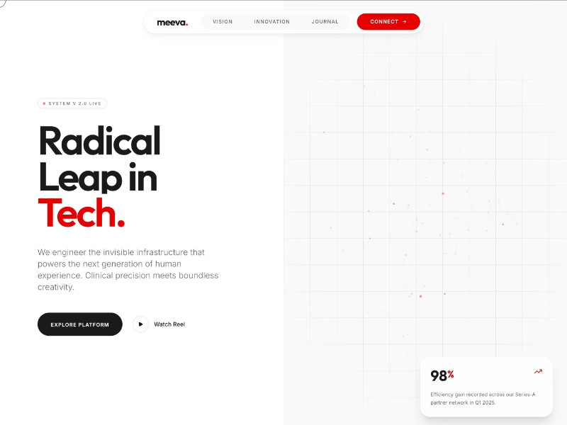 A premium Meeva-inspired landing page template for futuristic technology brands to showcase innovation, platform features, and high-end product storytelling.