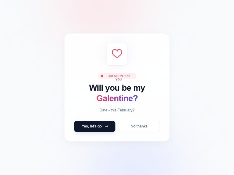 Galentine Glow is an interactive landing page template for charming, playful Galentine's or romantic proposals.