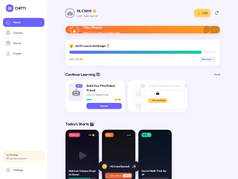 This template helps teams launch a polished educational product faster with a fun, reward-driven interface designed to make learning feel interactive and motivating.