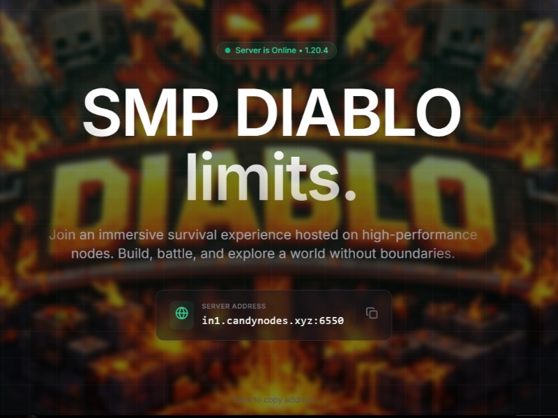CandyNodes Network is a dark, high-impact gaming landing page template tailored for Minecraft-style SMP servers.