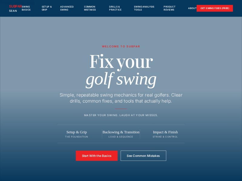 - Story-driven hero tailored to 10–20 handicap golfers