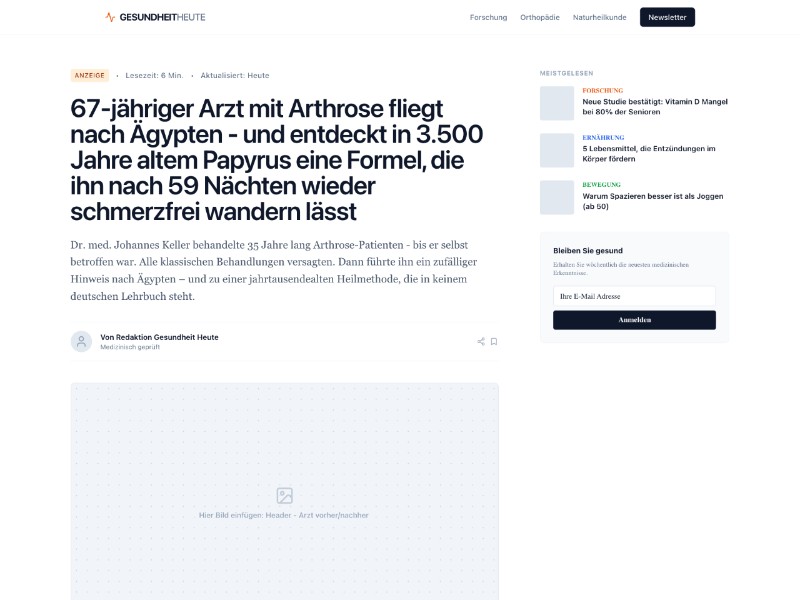 Ideal für Health- & Supplement-Marken, die ein redaktionelles, deutschsprachiges Advertorial zur Bewerbung eines Gelenk- oder Gesundheitsprodukts aufsetzen möchten.