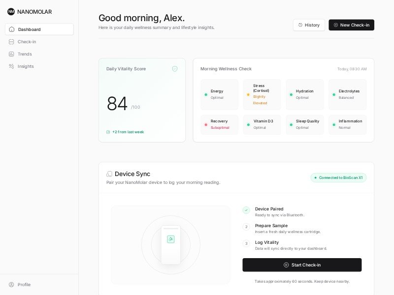 Built for digital health products, wearable dashboards, and biotech wellness apps that need a polished interface for presenting readings and recommendations.
