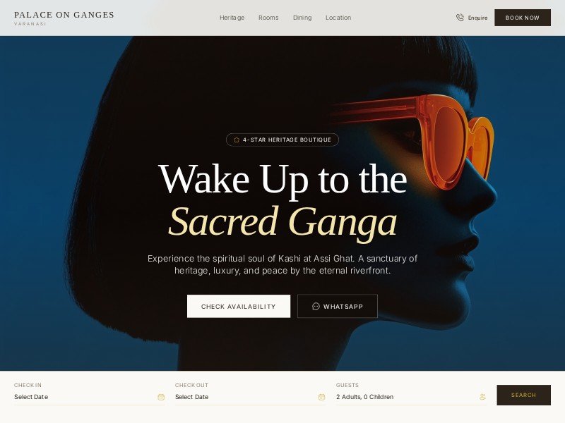 Palace On Ganges is a premium heritage hotel landing page template tailored for boutique and destination properties.
