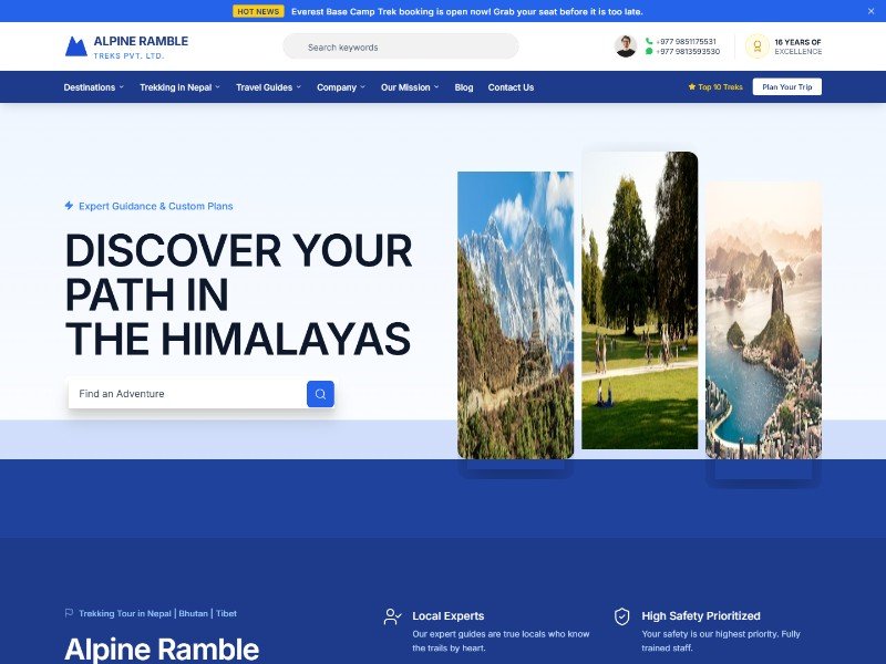 Ideal for adventure travel companies, trekking outfitters, and Himalaya tour operators who need a high-converting, brand-forward landing page to showcase itineraries, build trust, and drive trip enquiries or bookings.