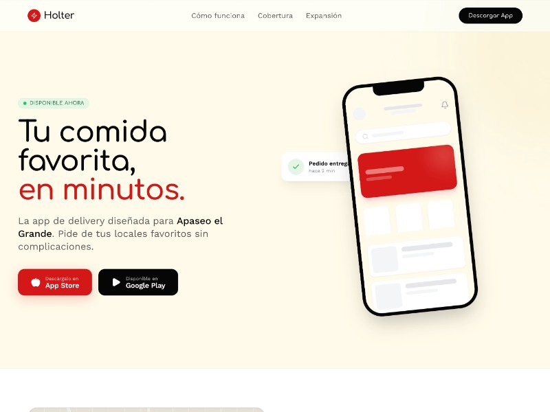 A modern Holter delivery app landing page template for local food delivery services, ready to customize for your own city-focused delivery startup.
