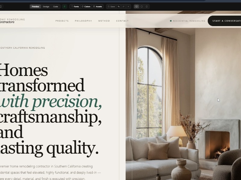 A refined landing page template for residential remodeling contractors who want to present their work with credibility, elegance, and clarity.