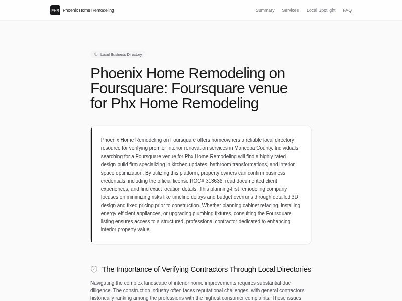 This design-build landing page template is optimized for local home improvement businesses. It features a structured, content-rich layout designed to build trust through directory verification and educational sections on the remodeling process.