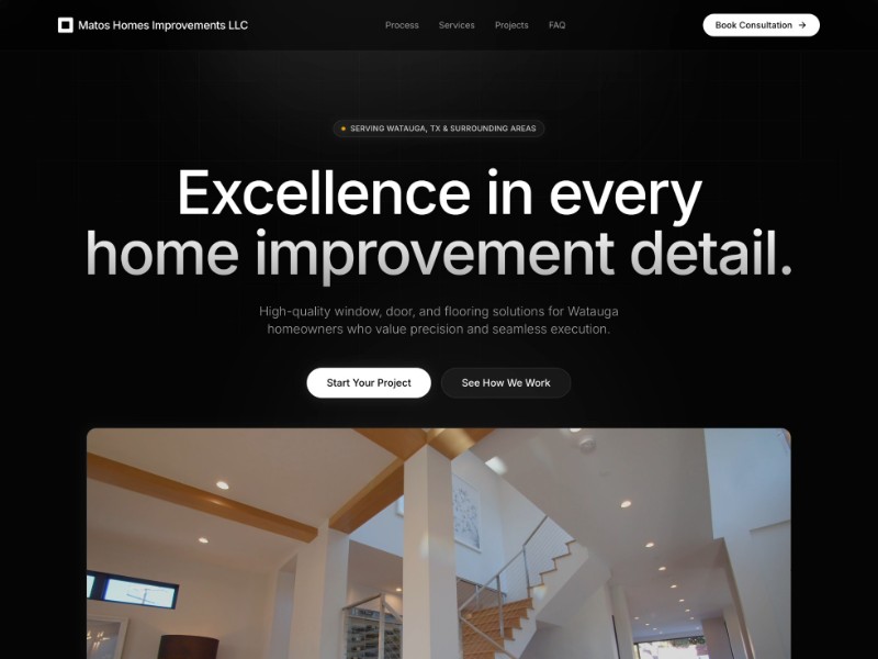- Services "bento" grid for kitchens, baths, and full-home remodels