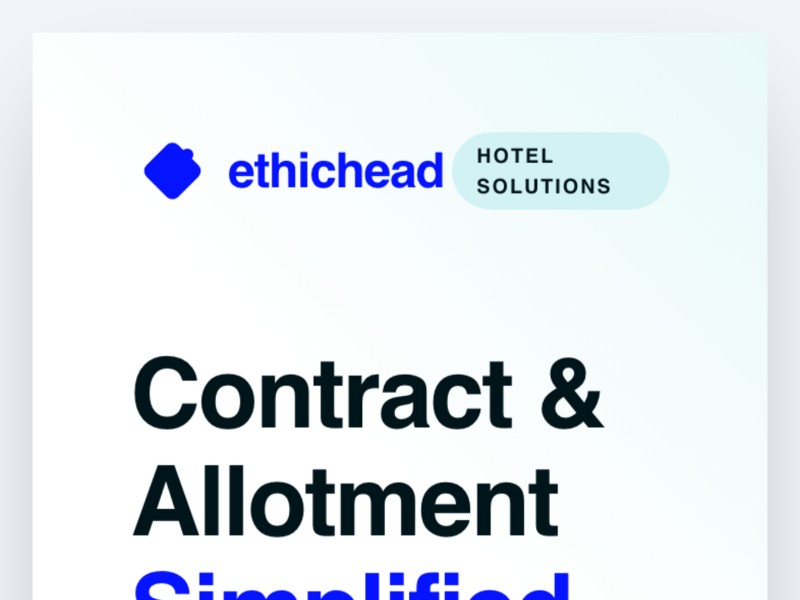 A premium A4 bifold brochure template for hotel and travel technology platforms, designed to pitch contract and allotment management solutions to modern hotels.