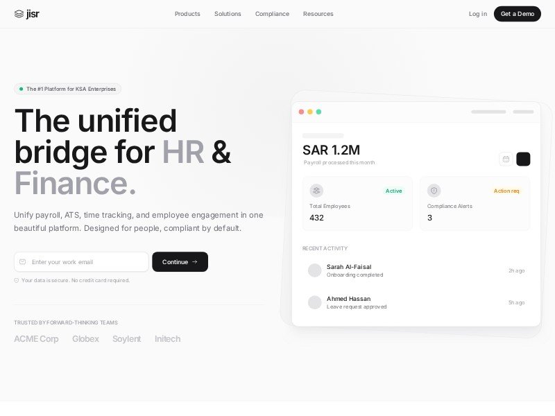 Primary use case: marketing an HR-tech or payroll SaaS product for enterprise teams, especially compliance-heavy regional markets like KSA.