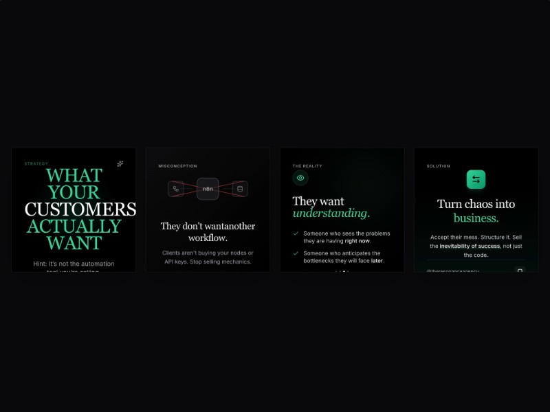 Primary use case: reuse this template to quickly produce polished Instagram carousels that explain complex services (like automation and workflows) in a way customers actually understand and value.