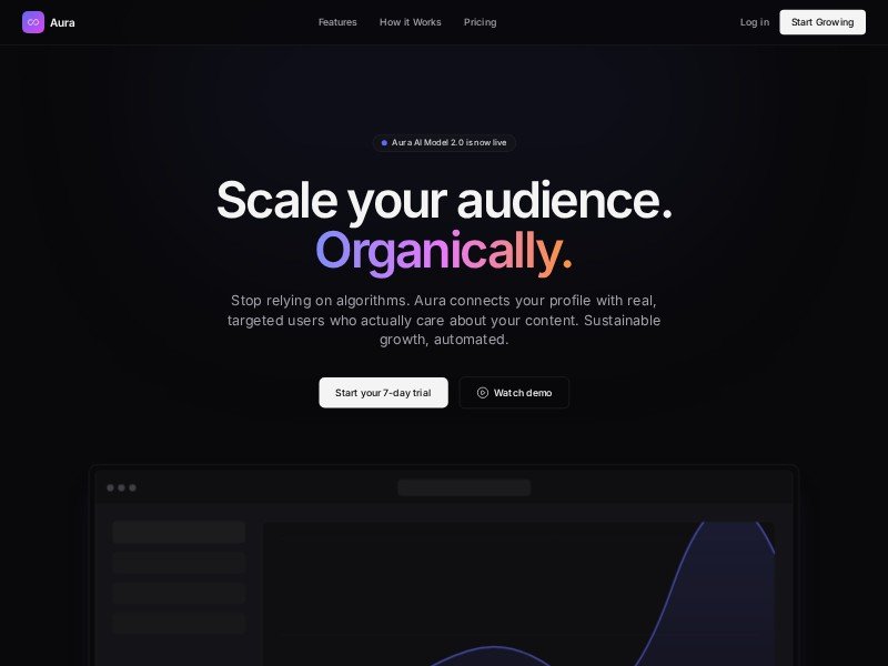 Aura Instagram Growth Landing Page Template is a sleek, dark SaaS-style page for showcasing an AI-powered organic Instagram growth product.