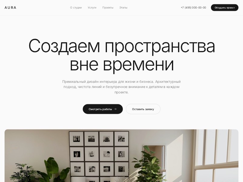 A premium interior design studio template for showcasing services, projects, and consultation offers with elegant visuals and refined brand messaging.