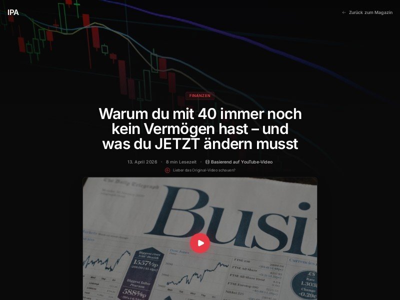 A high-impact dark mode blog template designed for financial educators and influencers, featuring video integration and progress tracking.