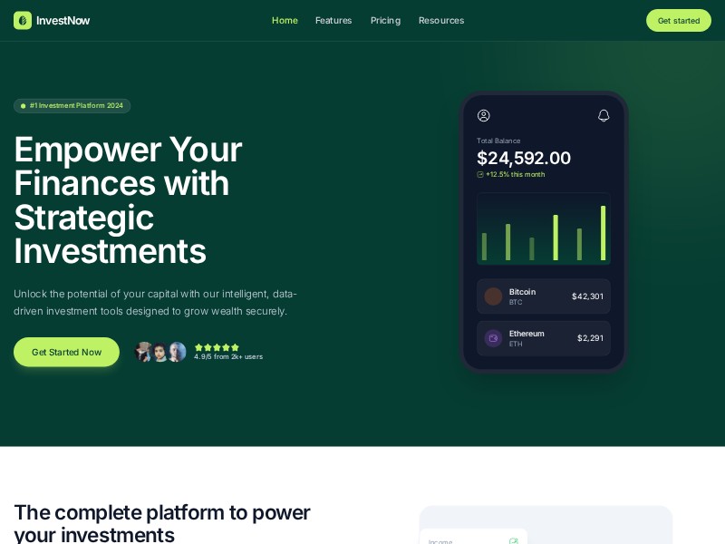 InvestNow Investment Platform Landing Page Template delivers a high-converting, fintech-ready design for modern investment and crypto products.