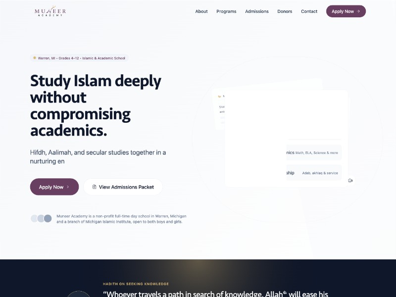 Ideal for Islamic schools, madrasas, and academies launching or redesigning their primary marketing site to attract families, students, and donors while balancing deen and dunya.