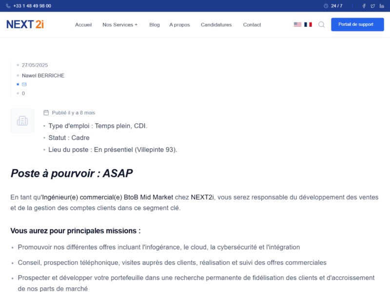 This template is a structured job offer page for IT and services companies, modeled on the NEXT2i style.