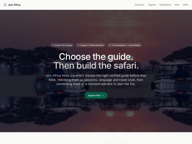 Perfect for travel startups or established operators who need to present or manage their marketing ecosystem in one cohesive, high-conversion landing page format. Ideal for aligning remote teams on content production and paid search/social cycles.