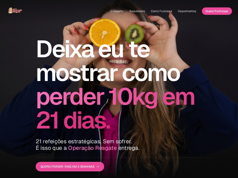 Health Challenge Landing Page Template inspired by the Operação Resgate program, built for nutrition and fitness professionals to sell 21‑day transformations.