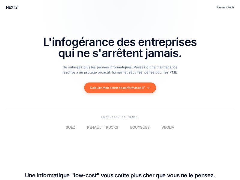 Infogérance PME Landing Page Template inspired by NEXT2i, designed for French-speaking managed IT providers.
