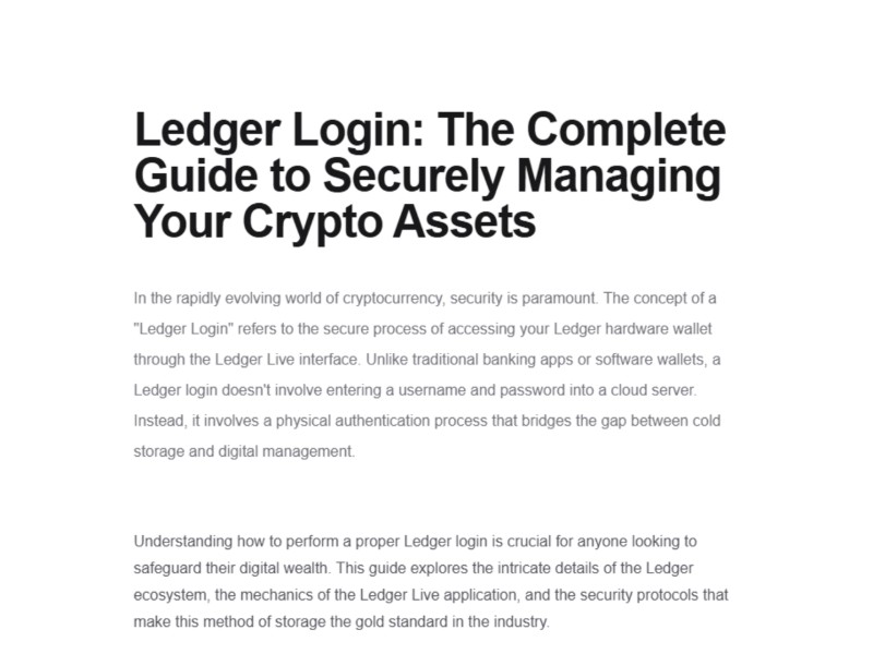 Use this template to quickly create authoritative Ledger login and crypto security guides, helping users understand safe cold-storage access and best practices while maintaining a professional, trustworthy brand presence.