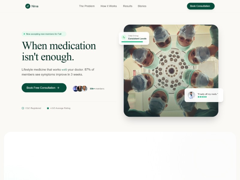 Ideal for lifestyle, functional, or integrative medicine brands launching or upgrading a marketing site. This template helps you clearly communicate your method, showcase results, and drive more qualified consultation bookings with a calm, trust-building aesthetic.