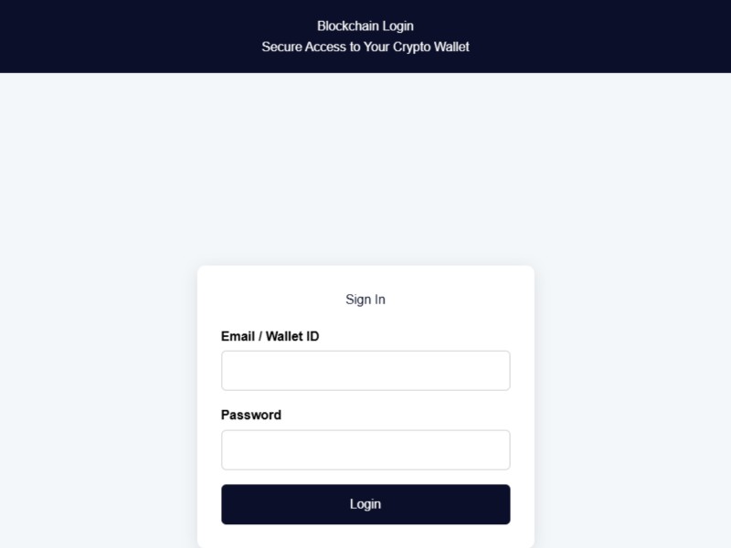A reusable login page template for crypto and blockchain wallet platforms, featuring a secure UI layout, hero banner, and content section for trust-building copy.
