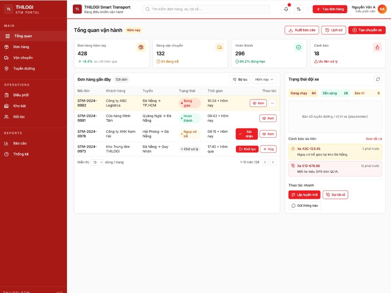 A branded, STM-style dashboard template for logistics and transport teams, built with Tailwind CSS and focused on real-time operations.