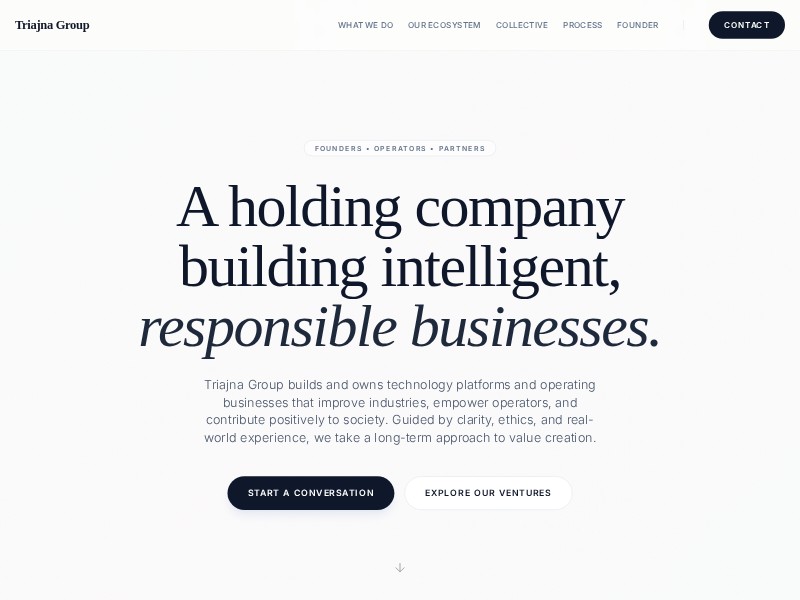 Ideal for holding companies, investment collectives, and operating groups who want an elegant, narrative-driven site to attract aligned founders, leaders, and partners while clearly communicating their long-term approach.