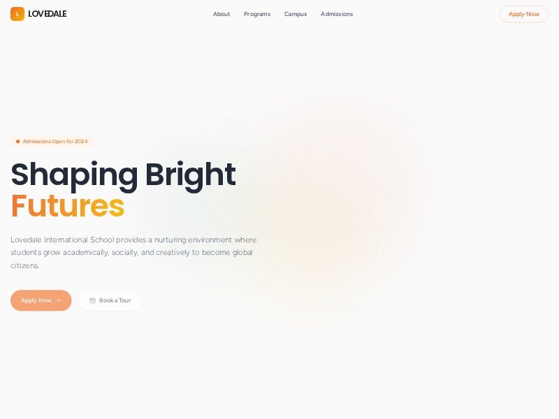 A polished landing page template for schools and educational institutions promoting admissions, academic programs, and campus experience.