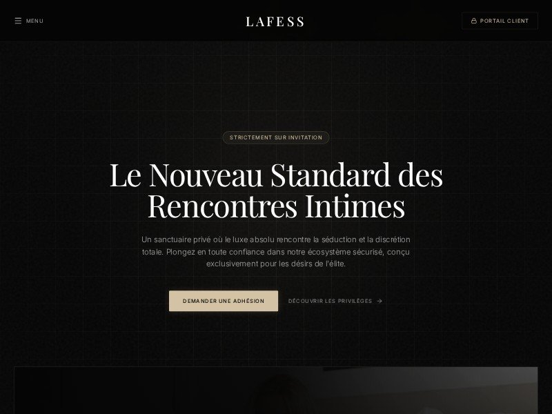 LaFess Élite est une landing page template ultra-premium pour plateformes de rencontres intimes privées et services adult-only haut de gamme.
