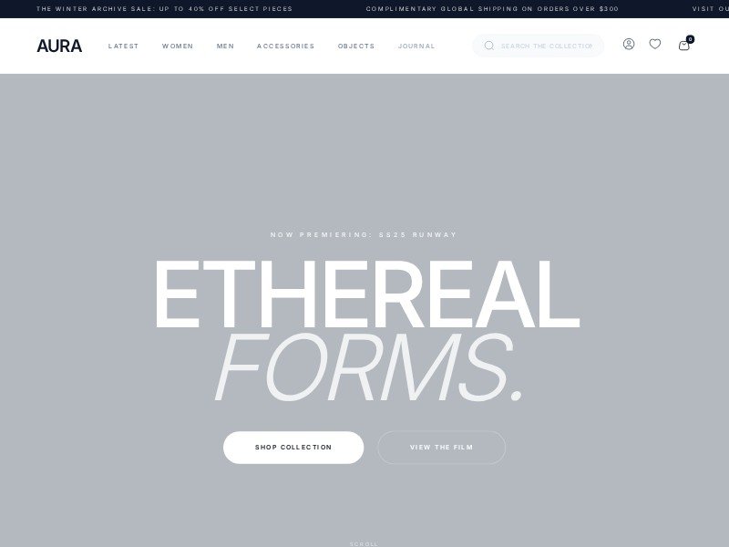 - Editorial-driven e-commerce homepage with boutiques and journal content.