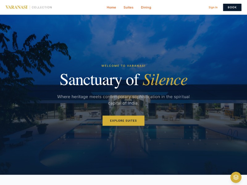 Varanasi Collection is a luxury hotel website and operations template combining guest-facing elegance with powerful internal dashboards.