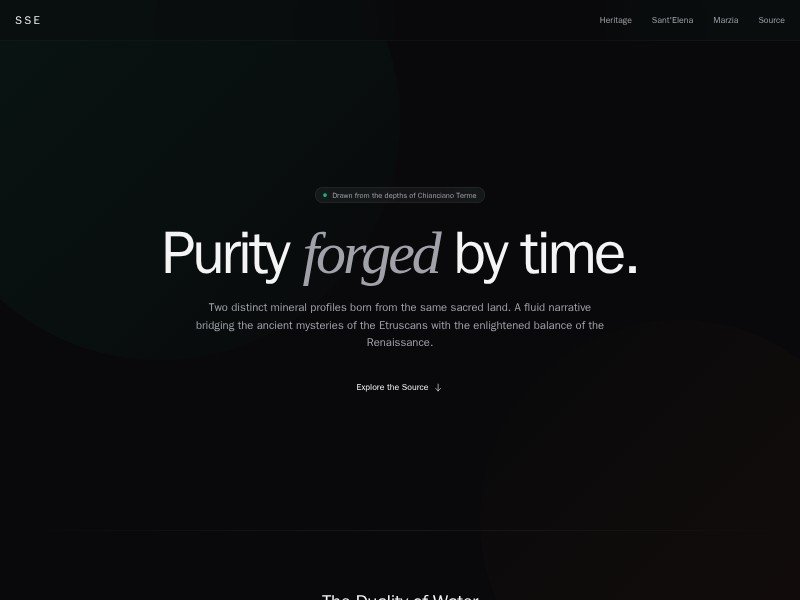 A luxury landing page template for premium mineral water and beverage brands, blending heritage storytelling with modern product presentation.