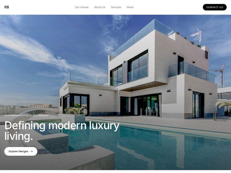 A high-end, modern landing page template for luxury custom home builders and architectural design firms showcasing portfolios and build processes.