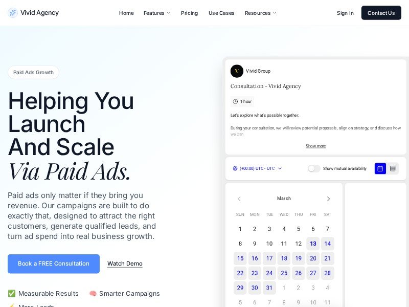 A reusable landing page template for paid ads and growth agencies to showcase services, build trust, and drive consultation bookings.