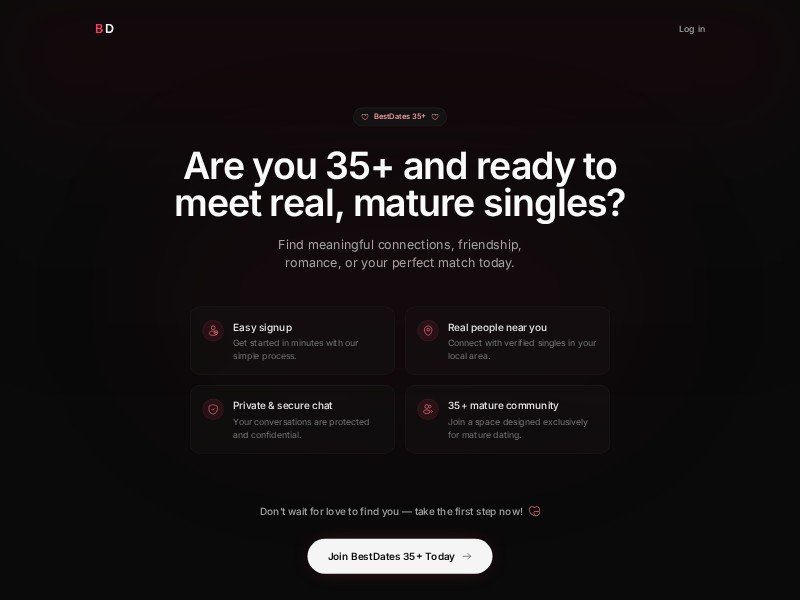 A sophisticated and premium landing page template designed for dating services targeting mature audiences over 35.