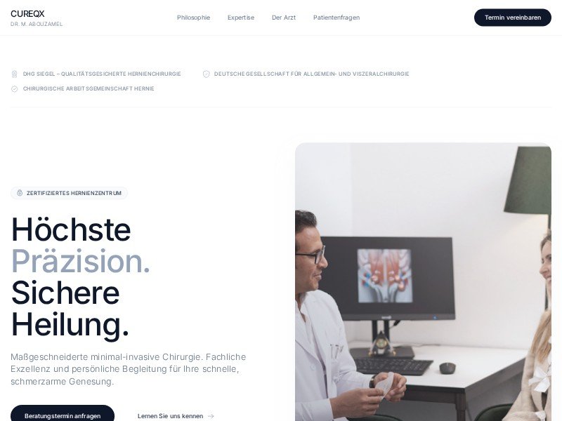 This CUREQX template is a high-end, brand-forward landing page specifically crafted for medical specialists and surgical clinics. It balances clinical authority with a modern, approachable aesthetic, utilizing a sophisticated Clean and Minimal visual style.