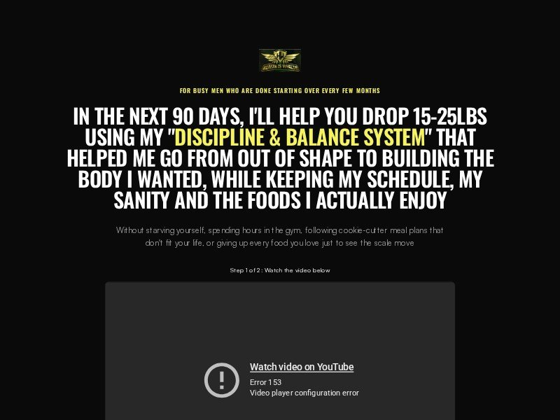 A high-converting fitness coaching landing page template designed for coaches helping busy men lose weight and build lasting habits. It combines bold VSL-driven messaging with social proof and clear calls to action.