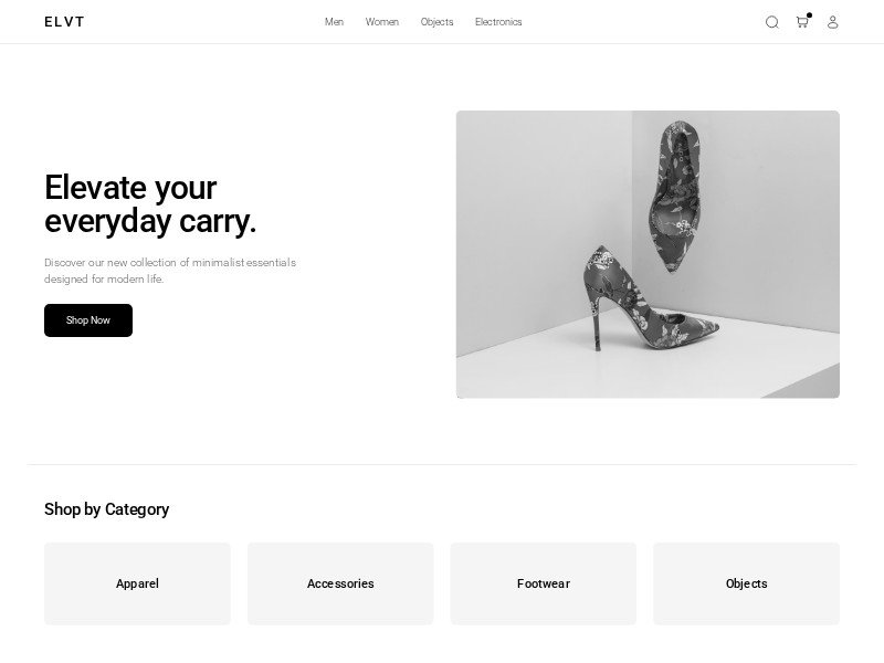 Primary use case: launching a premium direct-to-consumer store or showcasing a minimalist product catalog.