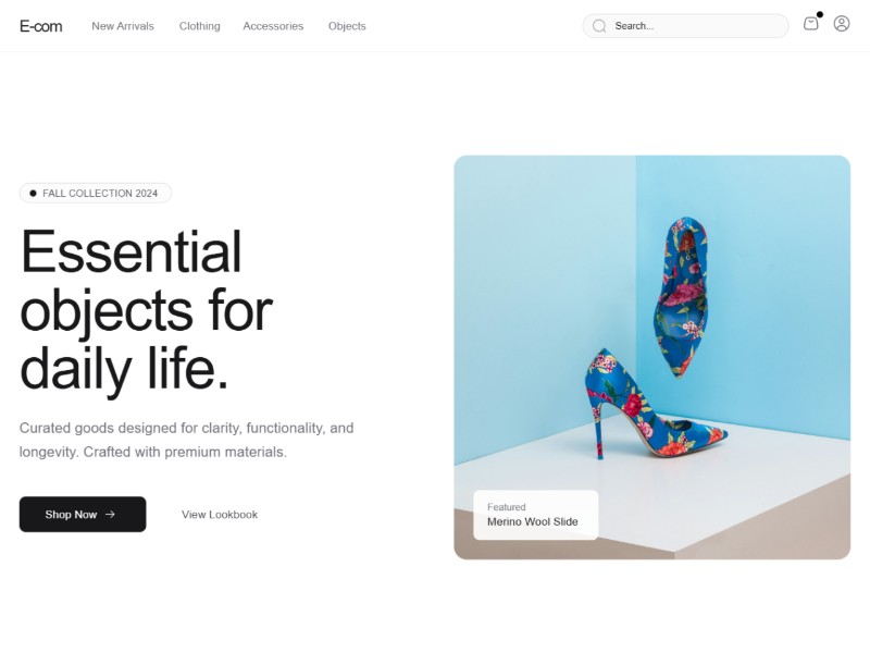 E-com is a minimalist e-commerce landing page template built for modern online stores that value clean design and curated products.