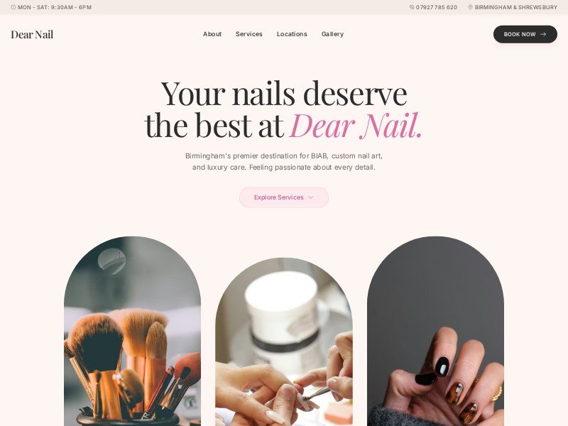 Elegant, salon-ready landing page template crafted for nail and beauty studios to showcase services, pricing, galleries, and locations.