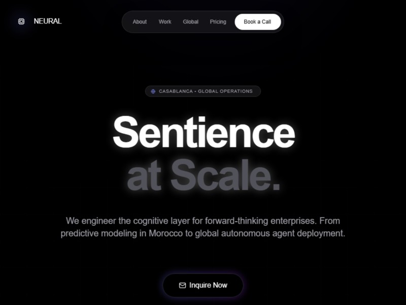 NEURAL is a dark, futuristic landing page template crafted for AI agencies, infrastructure providers, and deep-tech studios showcasing advanced cognitive solutions.