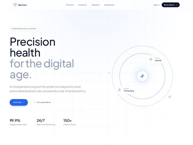NexCare Health AI Landing Page Template delivers a premium, product-focused layout for modern medical and health-tech platforms.